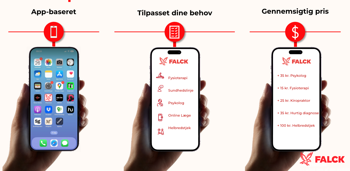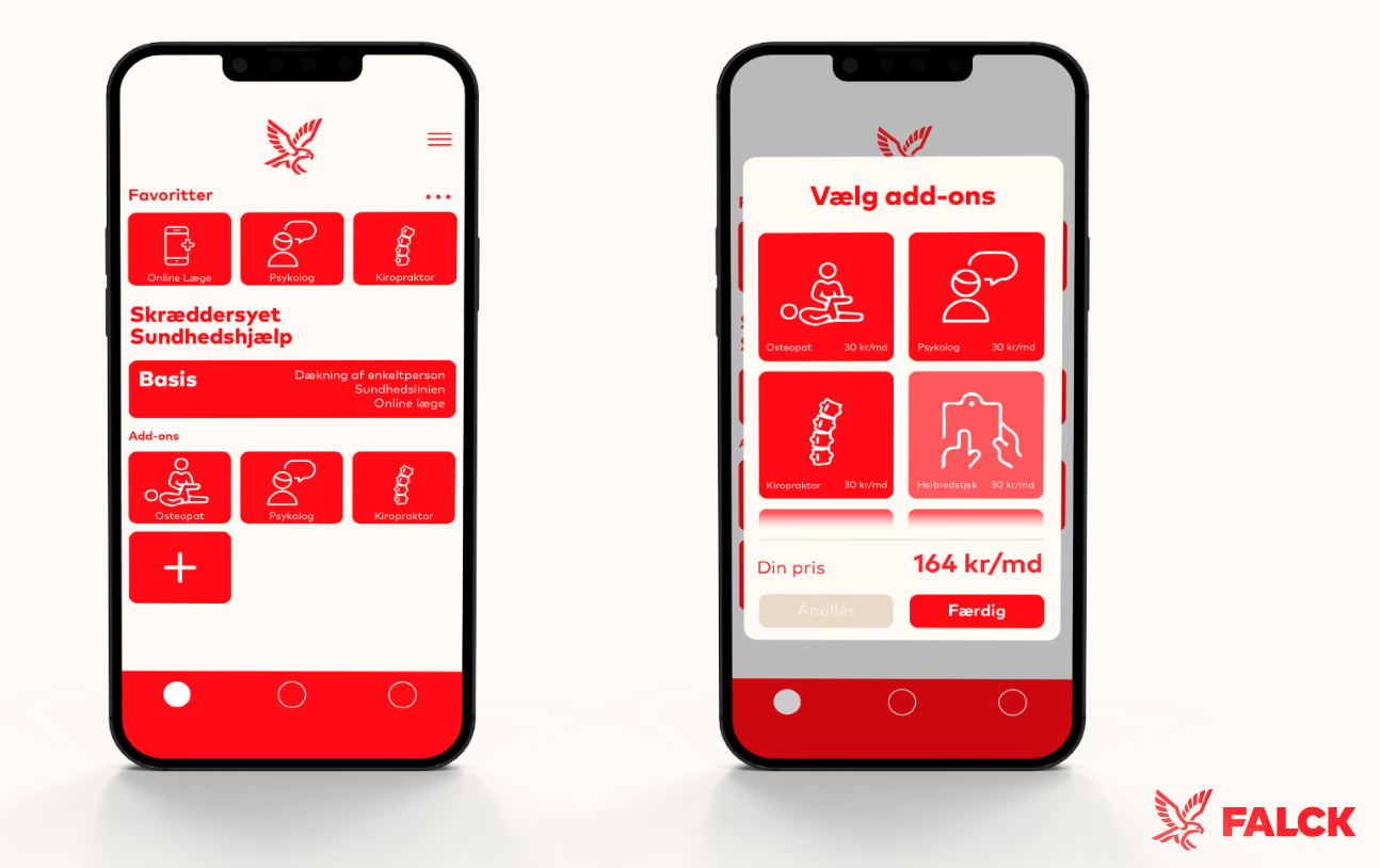 Intro: Falck Sunhedshjælp is a simple way to prevent sickness and to get medical advice faster and easier. Falck wanted an updated product portfolio inside the app, to draw in a larger target group and to make the service even broader.